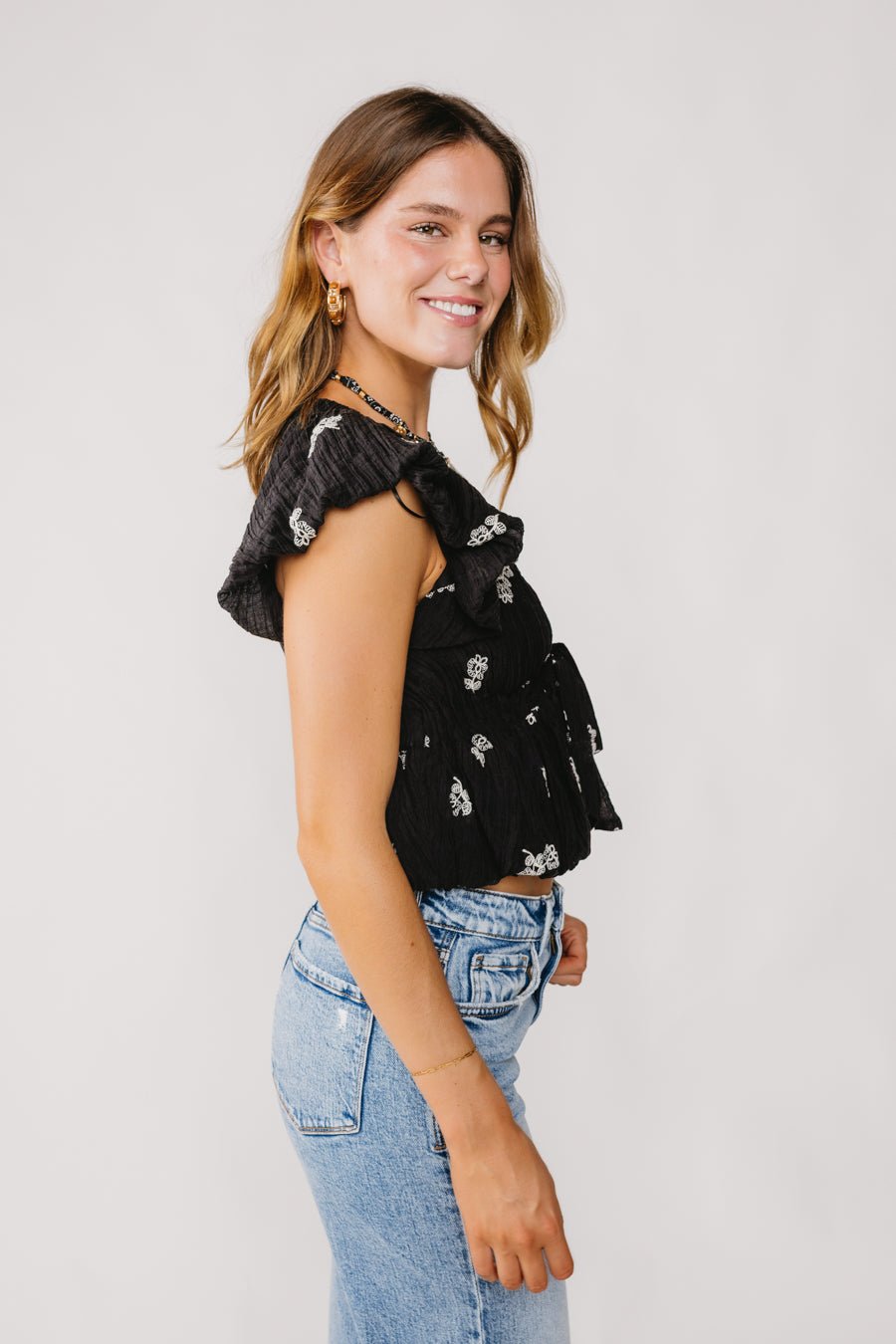 - Floral embroidery